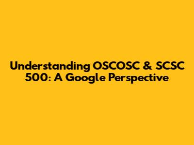 Understanding OSCOSC & SCSC 500: A Google Perspective