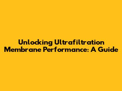 Unlocking Ultrafiltration Membrane Performance: A Guide
