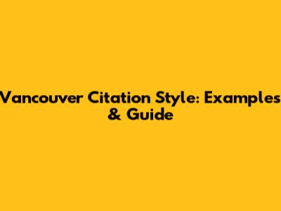 Vancouver Citation Style: Examples & Guide